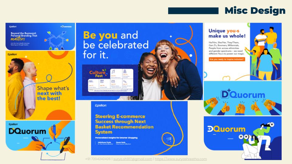 My creative journey spans industries such as pharma, media, advertising, education, and enterprise tech, having led high-impact design initiatives for top global brands like Disney, Pfizer, Epsilon, Byju’s, and Merck. What sets me apart is a fusion of storytelling and systems thinking: I believe design is not just about how it looks — it's about how it moves, feels, solves, and scales. Whether I’m building a brand identity, directing a video campaign, or automating large-scale content production with AI, my approach is always purposeful, collaborative, and rooted in creative clarity.
